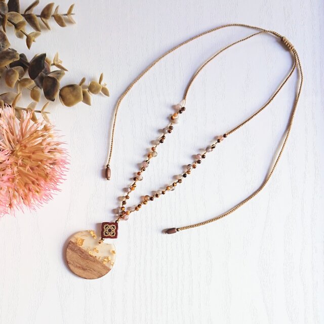 ずっと作ってみたかった、ナチュラルな雰囲気の ウッドを使ったネックレスです。