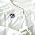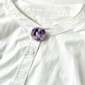 こちらのブローチは淡水パールを中心に流れを描くようなデザインになりますが、この流れは私が作った時に感じるままに刺繍しました。全体に紫色の強さとやさしさを融合させ、気品あるブローチをイメージしています。
