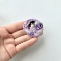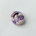 いくつもの色調の異なる紫色と白のテーマカラーにちなんだトーンや輝き方の異なるビーズを使い、刺繍面のデザインのアクセントになるように散りばめました。