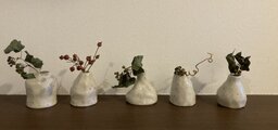 小さなお花を一輪づつ並べて飾ると可愛いかと思い作りましたが、もちろん一つづ飾っても可愛いと思います。