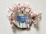 ステンドグラスのお雛様(小サイズ)をアーティフィシャルフラワーの桜のリースに下げました。