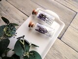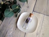 手のひらサイズのガラス瓶に、ドライフラワーを丁寧に詰め込みました。