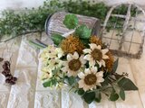 サンフラワー・ゼラニュウム・スノーボールベリー・ユーカリ
