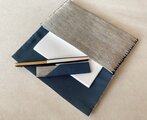 懐紙入れと楊枝入れを、同じ草木染、手織の生地にて揃えで仕立てました。
