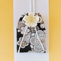 素敵なお守り袋をありがとうございました。オーダーで作っていただき、サイズもぴったりでした。 今回は白いお守り袋が欲しいと思って選んだのですが、生地の輝きと純白の花がとても美しいです。高貴さを感じました☆
