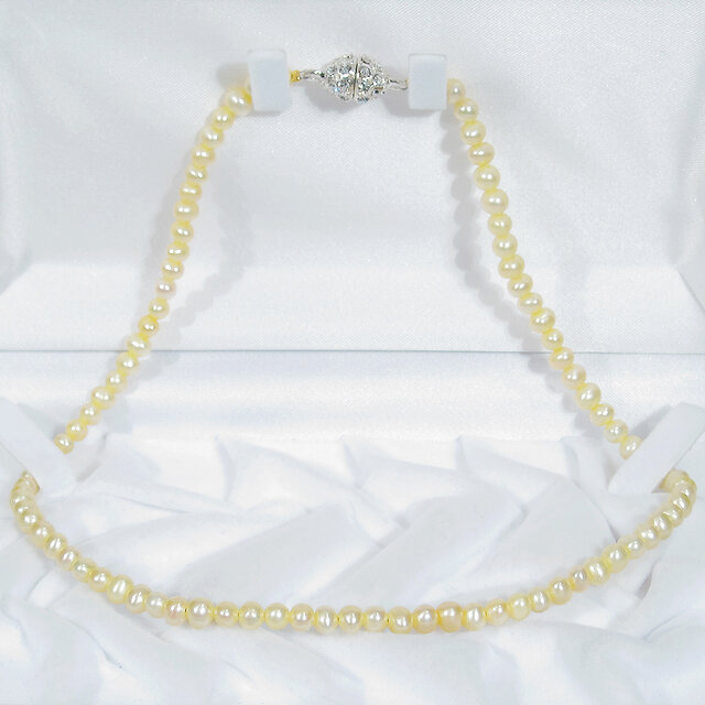 照りの綺麗な、明るいイエローの本真珠(淡水パール)のネックレスです。