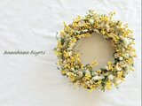 グリーンや白い小花を沢山あしらいリースにしました。