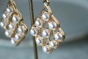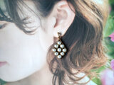パールの菱形プレートが特徴の少し大ぶりなピアス。