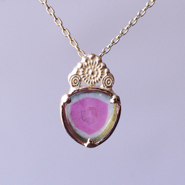 ウォーターメロントルマリンのK10製、1点ものネックレスです。