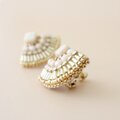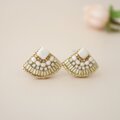 クリスタルを使用した、大人可愛い扇型のビーズ刺繍イヤリング。放射状に刺繍した竹ビーズが、光の加減でさりげなくキラキラします。