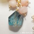 ロンドンブルーカラートパーズの上に、ピンクオパールのボタンカットをふわっとまとめて下げました。