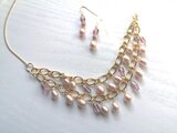 春/新作/春色/ガラス/淡水パール/ピンク/ゴールド/カットガラス/チェーン/ニット/真珠/セット/イヤリング/ピアス/パール/卒園式/卒業式/入園式/入学式/ワンピース/シンプル/ロングネックレス/ギフト/プレゼント/ゴールド/ステンレス/ネジバネ式/