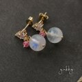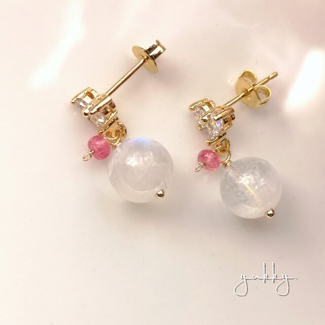 春色✽レインボームーンストーン*ピンクスピネルCZハートポストピアス