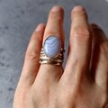 淡いブルーの中に白いレースが美しいブルーレースアゲートをシルバーリングに仕立てました。