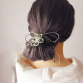 並んだ3輪の飾り結びの花が立体的に髪束を覆うデザイン