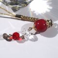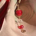 ワインレッド(金赤)・とんぼ玉直径約13mm、重さ約6g、全長約10cm(飾り部分約4cm)