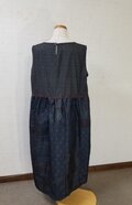 大きいサイズ 大島紬リメイク つけ襟付きギャザーワンピース