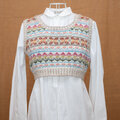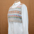 カラフルな模様を作れることを生かして、花の季節を待つ思いで、明るい色のショートベストにしました。