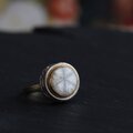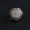 アンティーク感のある石に合わせて石枠のサイドに植物のレリーフを施し、上から見ても横から見ても個性のある指輪です。
