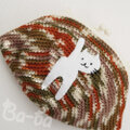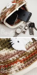 茶色・白グラデーション編み地のがま口に、ふりかえるシロのアップリケをしました。