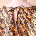春がはじけるような黄色がキュートな生地で、かぶって着るタイプのシンプルなワンピースを作りました。