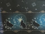 星座を背景に、シルエットの猫たちが、時空を超える旅をしているかのような布で、四六判ハードカバー用のブックカバーを作りました。一般的な小説やエッセイの単行本で、表紙がハードタイプのものに合うサイズです。