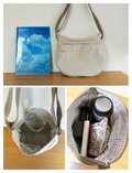 コットンウォッシュ加工帆布 生地 ベージュ色で、ななめがけ バッグを作りました。