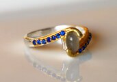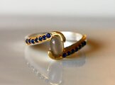 素材…トップは天然ムーンストーン サファイア バンド…スターリングシルバー925(一部ゴールドプレーテッド) 手作り