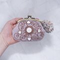 ふたこぶビーズ刺繍の眼鏡ケースがま口 Islandありがとうございました。発注後に制作して頂いた作品もありましたのに、3点共に緻密ビーズワークで驚きました。それでいて色もデザインも自由!!素敵です。一つ一つに見とれてしまいます。迅速な対応、素敵なラッピングと梱包、すべてが「月によろしく」さんなのですね。素敵な出会いに感謝です。