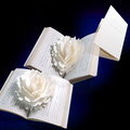 ピオニーの花を模した紙のしおり(ブックマーカー)です。本のページを開き、紐を持つと紙のピオニーが咲くように現れます。