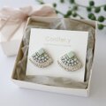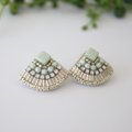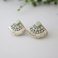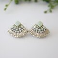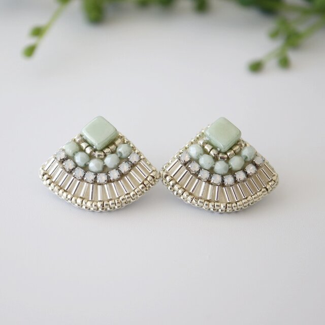 クリスタルを使用した、大人可愛い扇型のビーズ刺繍ピアス。放射状に刺繍した竹ビーズが、光の加減でさりげなくキラキラします。