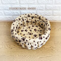 深めでスッポリ!シンプルなペットベッドMサイズ(肉球・うす茶)