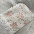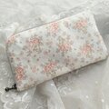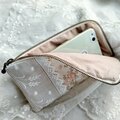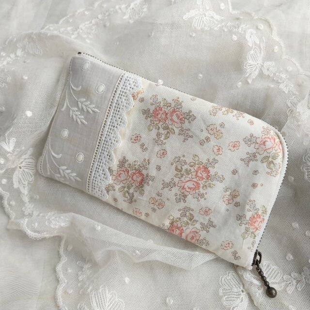 アンティーク刺繍レースとブーケ模様コットンを組み合わせたL字型ポーチです。