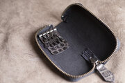 立体感のあるワニ革模様に仕上げたクロコダイルエンボスレザーで作ったキーケース。