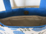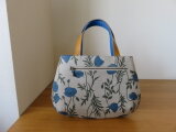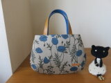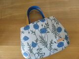 青いポピー柄リネンを使ってミニトートバッグを作りました。