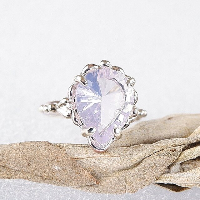 マダガスカル産のローズクォーツに青みを足したような、不思議な色合いが美しいラベンダークォーツを粒飾りのリングに仕上げました。