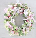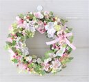 リース素材:アーティフィシャルフラワ-(造花):山桜・スイトピー・さくら草・ミニデージー・カスミソウ・ブバリア・あじさい・ユーカリ・グリーン、など。