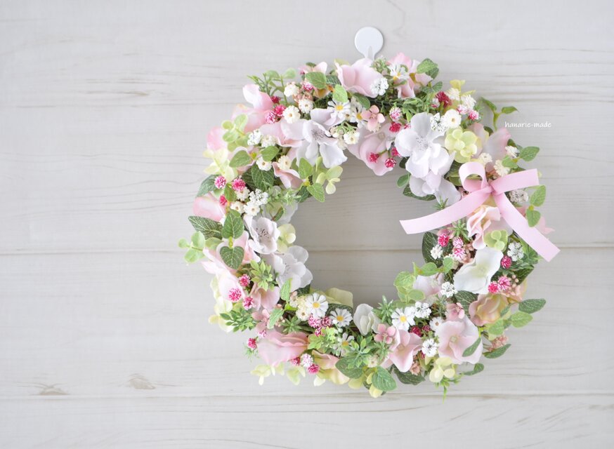 さくら待つ頃に no.2 小さな花々と リース:デージー ピンク 白 ウェディング 春 母の日