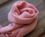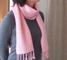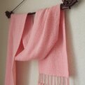 織りあがった時に、ちょっとかわいらしすぎる色?!と感じましたが、巻いてみると思ったより肌馴染みのいい色で、顔がぱっと明るく見えます。