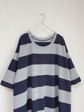 アパレル使用の太ボーダーカットソー生地でオフショルダーワンピースを製作しました。