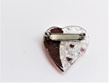 コーテイングされたガラスをハートの形にカットしたアクセサリー。ベースの片方に、ローズピンクの透明ガラス、もう片方にクリアーガラスを小さくカットして、ランダムに並べて少し硬めに焼成してガラスの透明感を出しています。