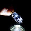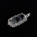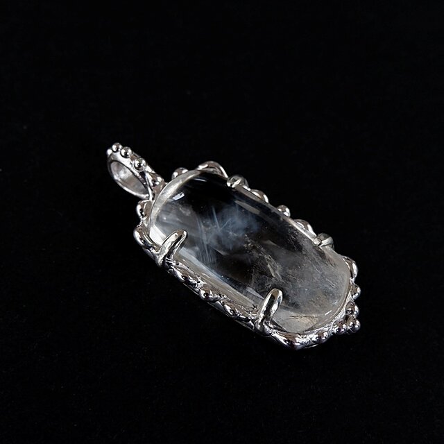 光に当たると、青く輝く部分が見られる水晶を粒飾りのペンダントに仕上げました。