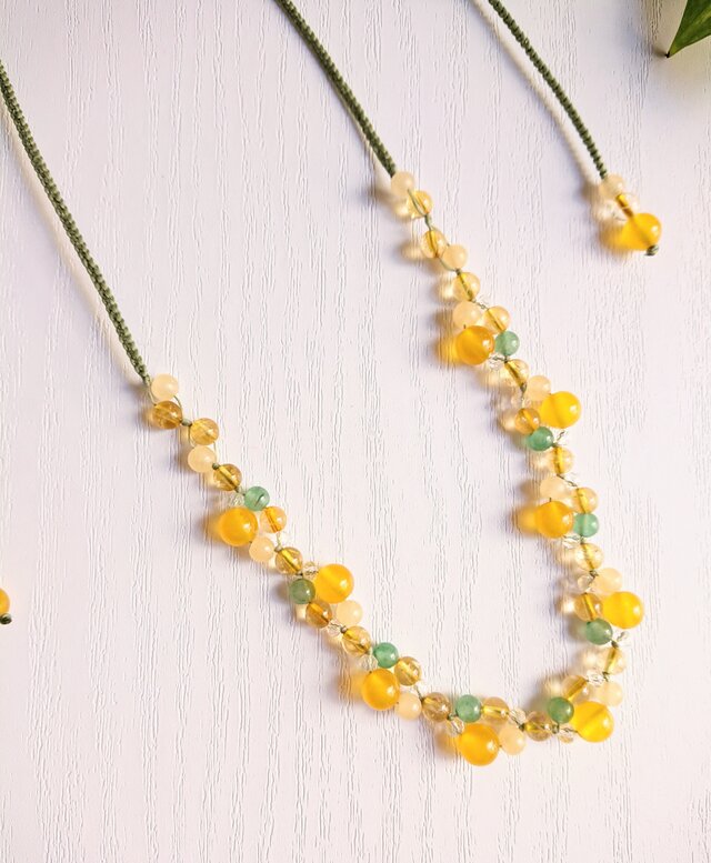ミモザ風 春の天然石 フリーサイズネックレス Y-1501