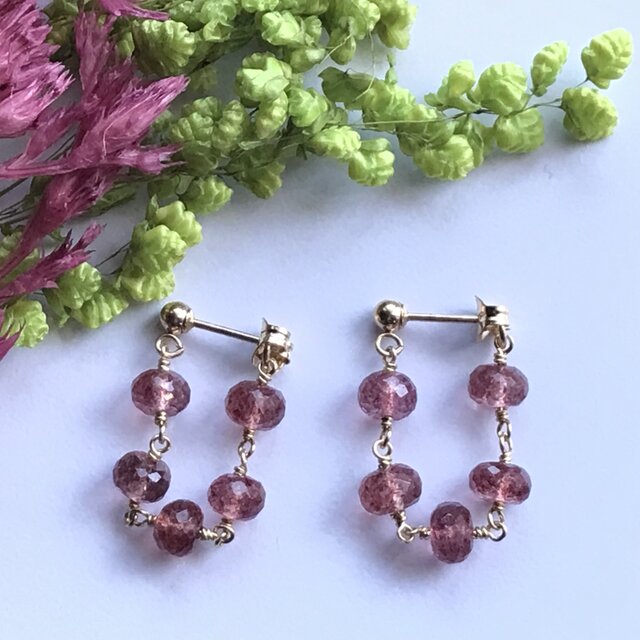 ストロベリークォーツ のシャンデリアピアス 14kgf