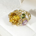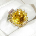 16.05ctシトリンとペリドット、アメシスト、SV925の指輪(13号、サイズ変更可、K18メッキ、天然石)