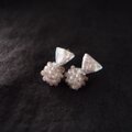シックなグレーの三角パールでアクセントをつけた刺繍ピアス。