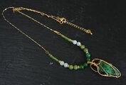 緑の美しいコスモクロアのカボッションをゴールドのワイヤーで巻きました。翡翠のようで翡翠ではない、非常に希少な鉱物です。