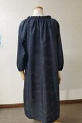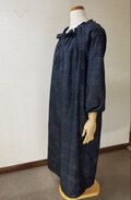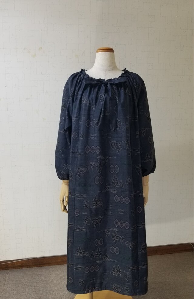 Sale 大島紬リメイク 襟ぐりギャザーリボンワンピース