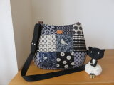 パッチワーク柄生地を使っておにぎり型ショルダーバッグを作りました。