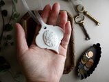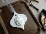 裏面にアロマオイルを垂らし、しみ込ませることでゆっくりと香りが広がります。香りを楽しむことで心を癒すインテリア雑貨です。石膏を固めてつくるので、丁寧にお作りしていますが、小さな気泡や欠けが発生します。